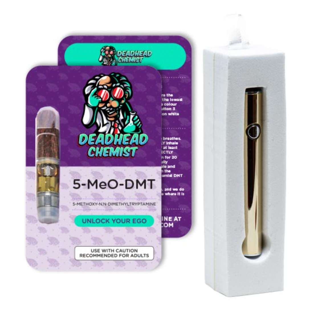 Deadhead Chemist targets users seeking an easy and effective way to experience the intense effects of DMT with its N, N-DMT vape pen. These vape pens use DMT-infused e-liquid that is compatible with commercially available vaping devices. Using a DMT vape allows for a more effective method of consumption relative to smoking, as the effects reach within a few minutes and only last around 15-30 minutes.